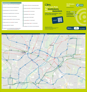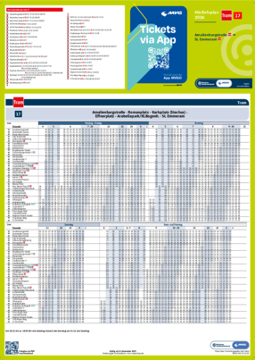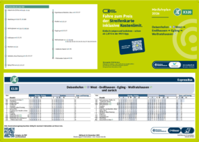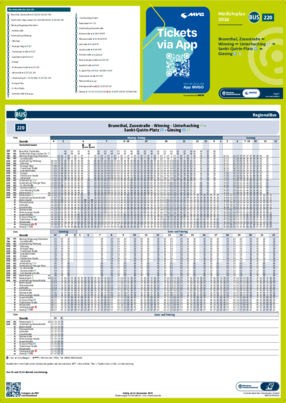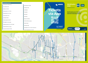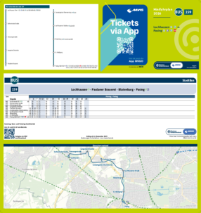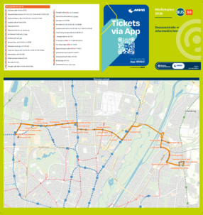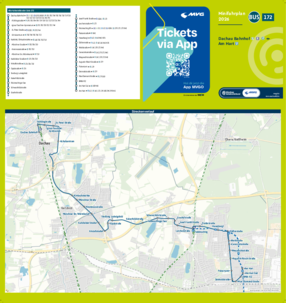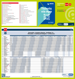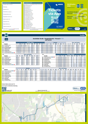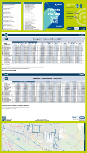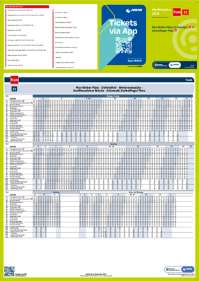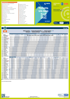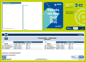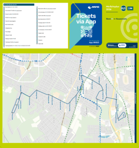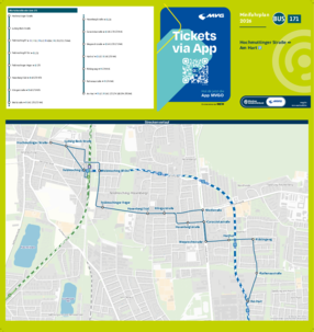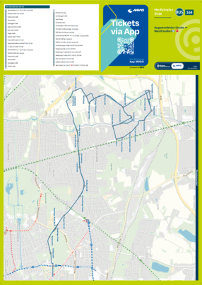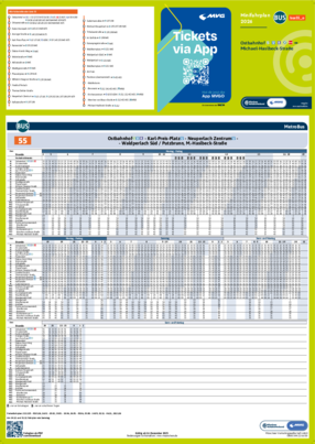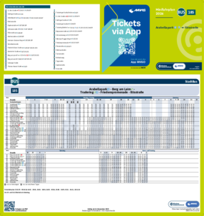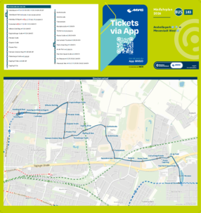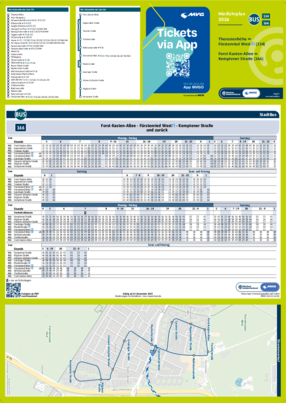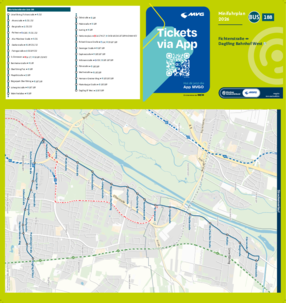 Wichtiger Hinweis: In allen Minifahrplänen wird der Fahrplan der jeweiligen Linie zum Fahrplanwechsel dargestellt. Dieser erfolgt stets Anfang Dezember eines Jahres. Fahrpläne können sich jedoch während eines Jahres ändern, dal beispielsweise Baumaßnahmen den Linienweg beeinflussen. Geänderte Fahrpläne finden Sie unter dem Menüpunkt "Fahrplanbuch" zum Download.