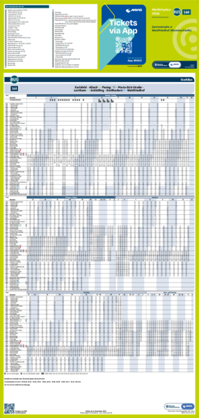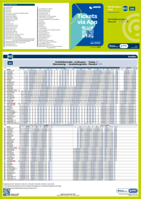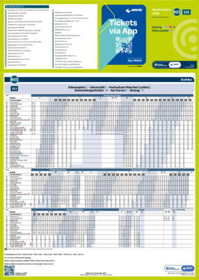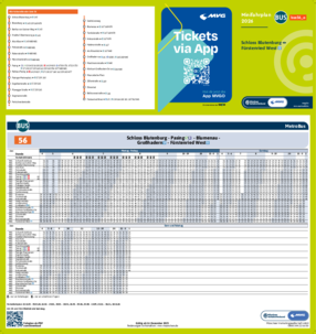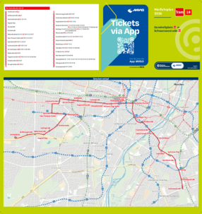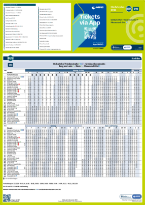 Alle gedruckten Fahrplanmedien und die PDF-Dateien für Minifahrpläne und Gesamtfahrplan bilden den regulären Jahresfahrplan ab. Aktuelle PDF-Dateien mit Fahrplanänderungen sind über die MVV-Auskunft unter dem Menüpunkt „Fahrplanbuch“ als einzelne PDF-Dateien abrufbar.Nicht aufgeführte Linien stehen mit Stand Dezember 2026 als PDF-Online-Version in unserer MVV-Auskunft zur Verfügung. Den Gesamtfahrplan 2026 können Sie sich hier als PDF-Datei herunterladen.